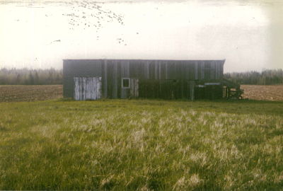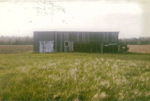 His first building was a shed made of 2x4s and drop siding. This became his temporary home and later was used as a granary and shop. He also worked to clear some of the land. At night, he would go back to the Westmans and sleep on a cot in their unfinished upstairs. The room had bare rafters and a rough lumber floor. It was here that the Westman children watched him “smoke tobacco”.