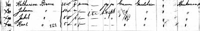 One of the tragedies of the journey to America was that five-year Karl died about the time they arrived. Family tradition says that he died the day before they landed at Ellis Island and the family had him buried in New York. Ellis Island records do have him arriving on July 11 but he was not on the family’s U.S. Census record the following year. In the ship’s manifest above, it looks like the phrase “in hospital” might apply to all three boys. Also on that page, the number of passengers changes from 29 to 26 if those boys were not released right away. More research needs to be done to settle this.