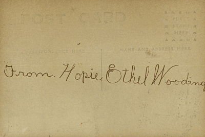 This card was sent to Ethel Woodington before they were married. She called him “Hopie.”