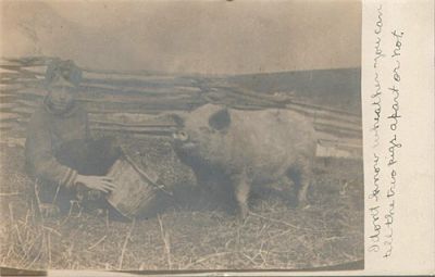 One of Monroe Hope’s favorite ways of sending mail was by sending postcards with his picture on the front. There was typically some sort of message that was probably better understood if the person really knew Monroe well–especially with his sense of humor. Below are two examples of those postcards.