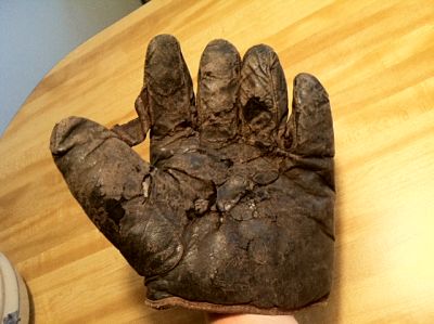 Last week I found a picture with the caption on the back saying, “Well, I declare! Part of Daggett’s first baseball team.” Oscar and “Biz” (Loren) Aderman and an unknown third man (standing in the middle) are shown in the picture. Oscar was the catcher until he got hit in the face with a ball and had trouble overcoming his skittishness after that. His baseball glove was quite small and poorly padded by today’s standards. Oscar had large workman’s hands–the glove would have been a tight fit for him.