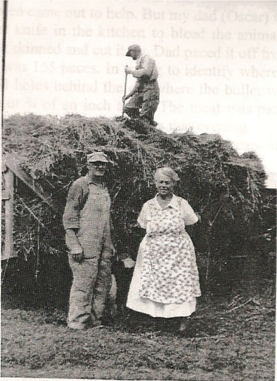 I don’t remember the exact summer, but it was just after World War II when a number of relatives from Illinois were up to visit. The whole Aderman family was down to the farm to meet them. It was a beautiful summer day until the middle of the afternoon when the sky in the west turned an ominous black. Grandpa Aderman (Carl) felt down in the dumps because he had that whole west field full of hay bales lying on the ground, a majority of his supply for the winter. My dad (Oscar) moved quickly and indicated that the storm was moving slowly. With all the help sitting around we could get most of it in before the rain got there.