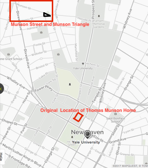 Munson Street is some blocks northwest of where Thomas Munson’s home was. His land is now part of the Yale University, just off the “Green.”
